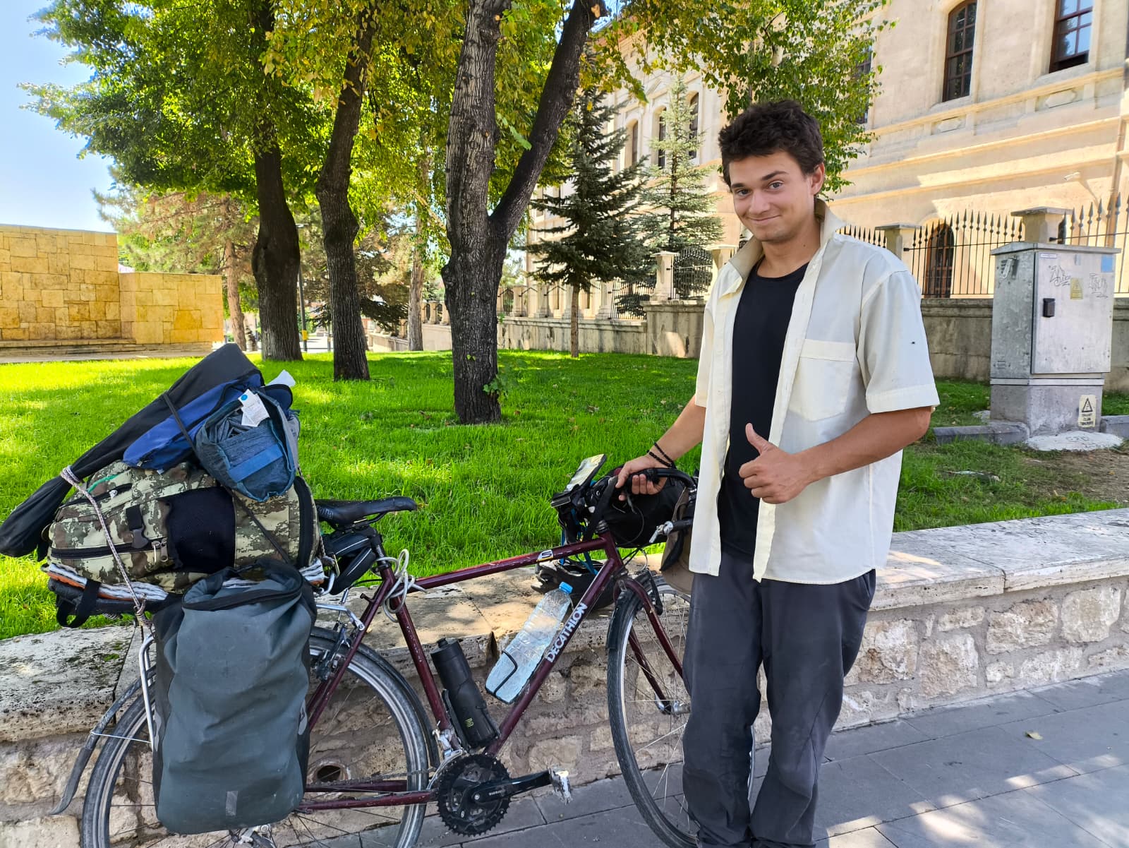 “Şu ana kadar gezdiğim ülkeler arasında en misafirperver ülke Türkiye. İnsanlar her zaman bana elinden geldiğince yardımcı oluyor. Dün öğleden sonra Sivas’a geldim, üniversitenin yakınlarında kamp kurdum. Bugün şehri gezmeye başladım. Buraya geldiğimde sokakta müzik çaldım, insanlar çok sevdi ve bana destek oldu. Bu benim çok hoşuma gitti.”
