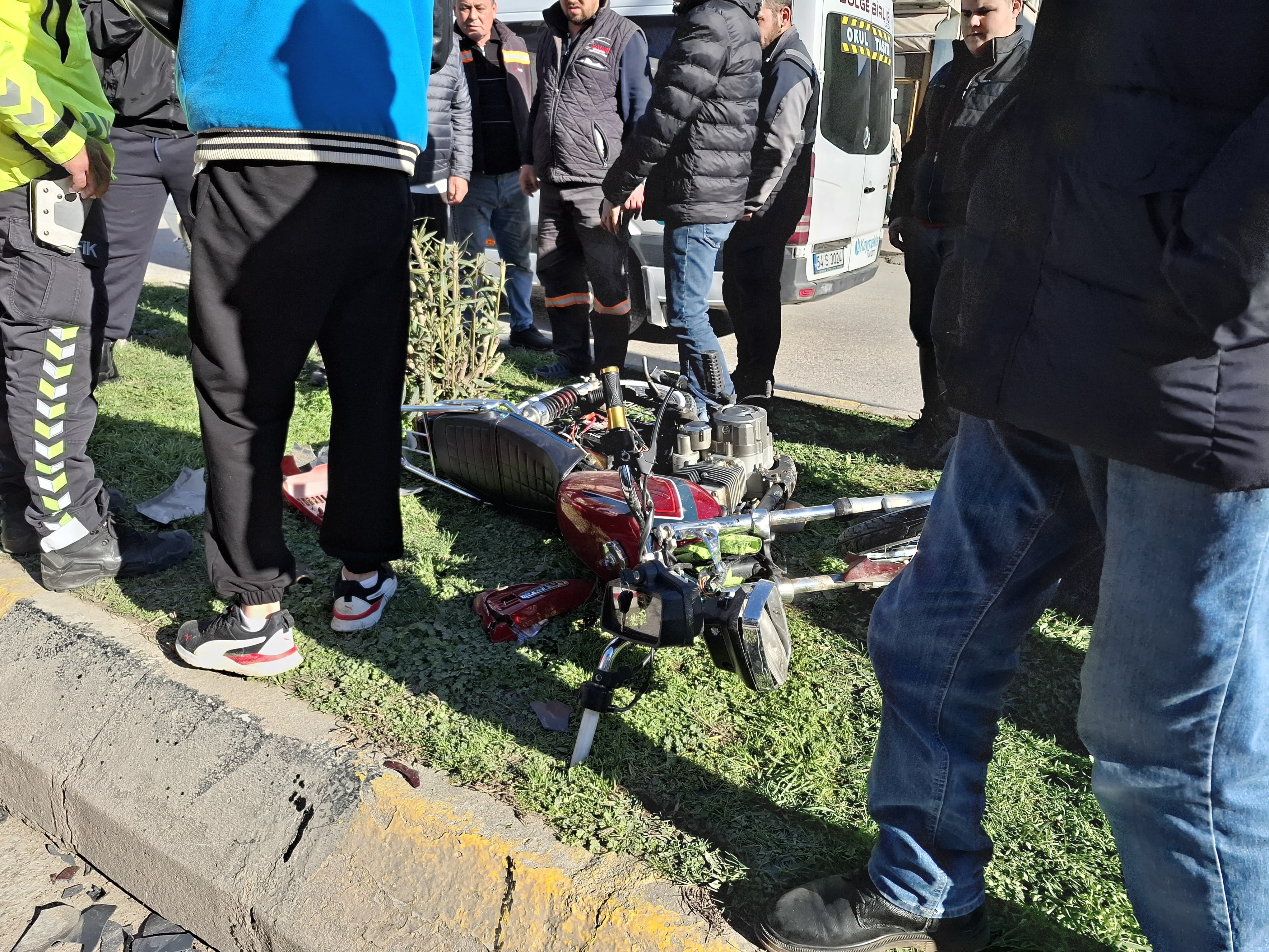 Kovalamaca esnasında Hastane Mahallesi Yeni Cami mevkiinde ters yöne giren motosiklet sürücüsü, 34 LN 3063 plakalı midibüse çarptı.