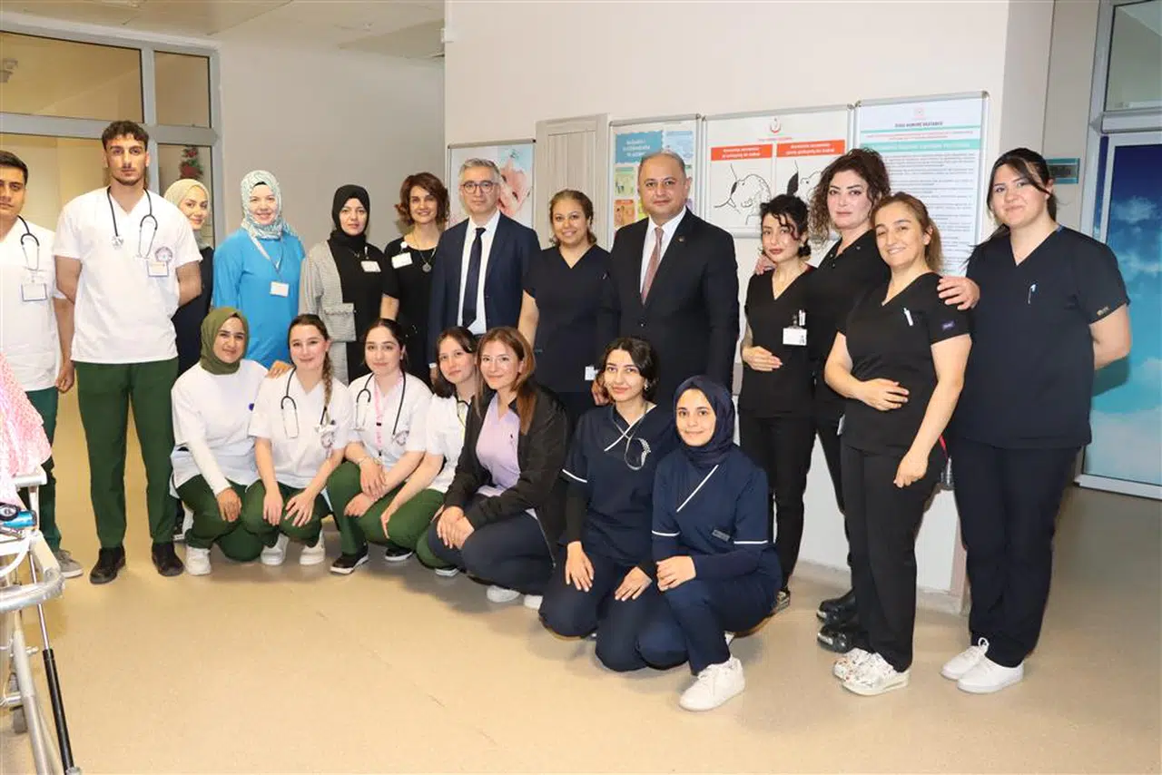 Bu önemli haftada, İl Sağlık Müdürü Uzm. Dr. Onur Mahmutoğlu ve Hastane Başhekimi Uzm. Dr. Mehmet Fidan, doğum ünitesi ve acil servis gibi kritik birimlerde gece gündüz demeden, büyük bir özveriyle görev yapan ebe ve hemşireleri çalışma alanlarında bizzat ziyaret etti.