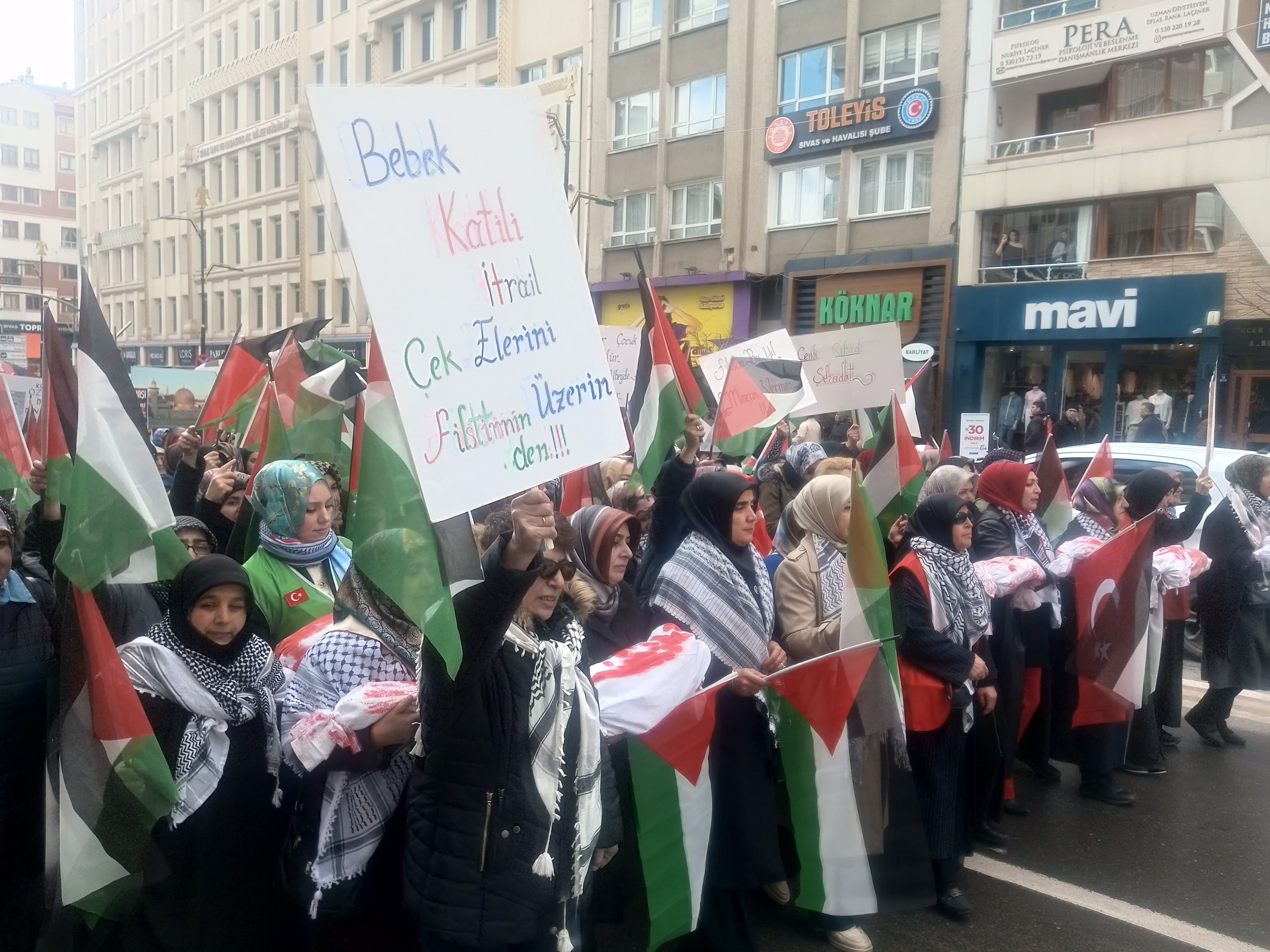 SSK Hastanesi önünden başlayarak kent meydanına kadar süren yürüyüşte İsrail’in Gazze’deki saldırıları protesto edildi.