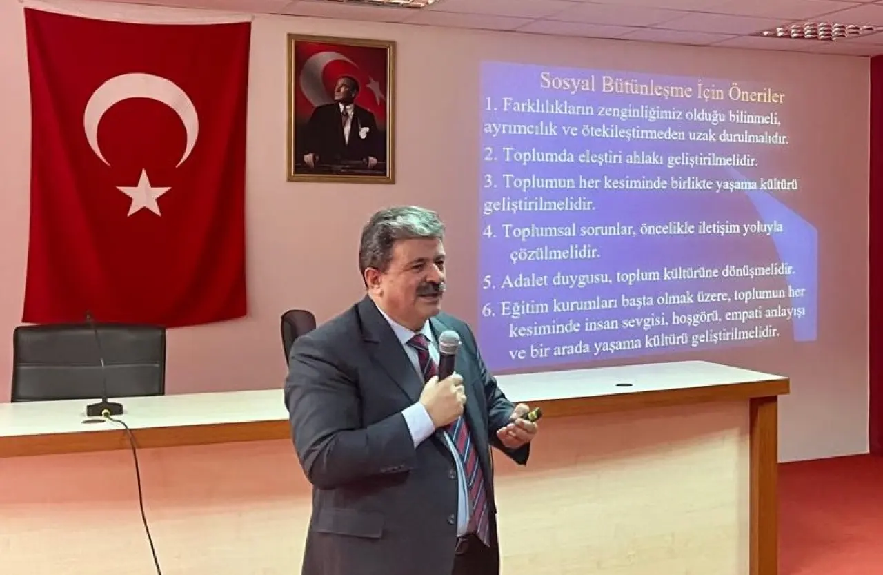 Konferansta, birlikte yaşama kültürünün gelişmiş toplumların temel karakteri olduğuna vurgu yapılırken, Prof. Dr. Hüseyin Yılmaz katılımcılara sosyal bütünleşmenin birey ve toplum açısından ne ifade ettiğini anlattı. Yılmaz, özellikle barış ve kardeşlik içinde yaşamayı zorlaştıran unsurlara dikkat çekerek, “Birlikte yaşamayı başaran toplumlar hem daha müreffeh hem de daha huzurludur” ifadelerini kullandı.