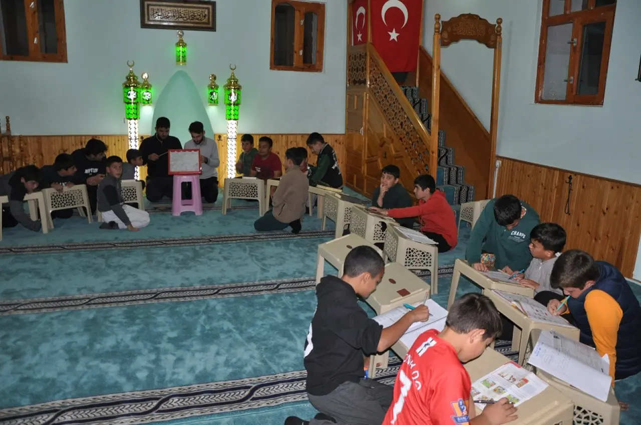 Hafta içi her gün yatsı namazı sonrası başlayan etkinliklerde, çocuklar önce cemaatle birlikte namaz kılıyor, ardından cami içerisinde hocalarıyla birlikte hem ders çalışıyor hem de Kur’an-ı Kerim öğreniyor. Cami ortamında gerçekleştirilen bu faaliyetler, dini eğitimin yanı sıra çocukların akademik gelişimine de destek sunuyor.