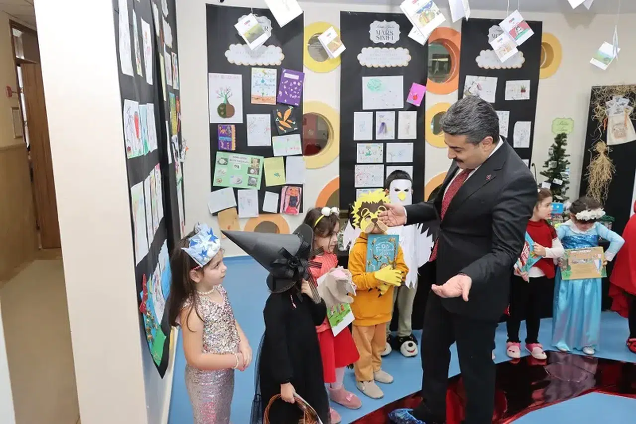 Proje kapsamında öğretmen, öğrenci ve veli iş birliğiyle hayata geçirilen “Heybemdeki Kitap” etkinliği sergisi, ziyaretçilerin beğenisine sunuldu. Sergide, öğrencilerin seçtikleri hikâye kitapları üzerinden hazırlanan çalışmalar yer aldı. Kitap sevgisini erken yaşta kazandırmayı amaçlayan etkinlikte, çocukların hayal dünyasını yansıtan detaylar dikkat çekti. Millî Eğitim Müdürü Erdoğan, sergiyi gezerek yapılan çalışmalar hakkında öğretmenlerden bilgi aldı.