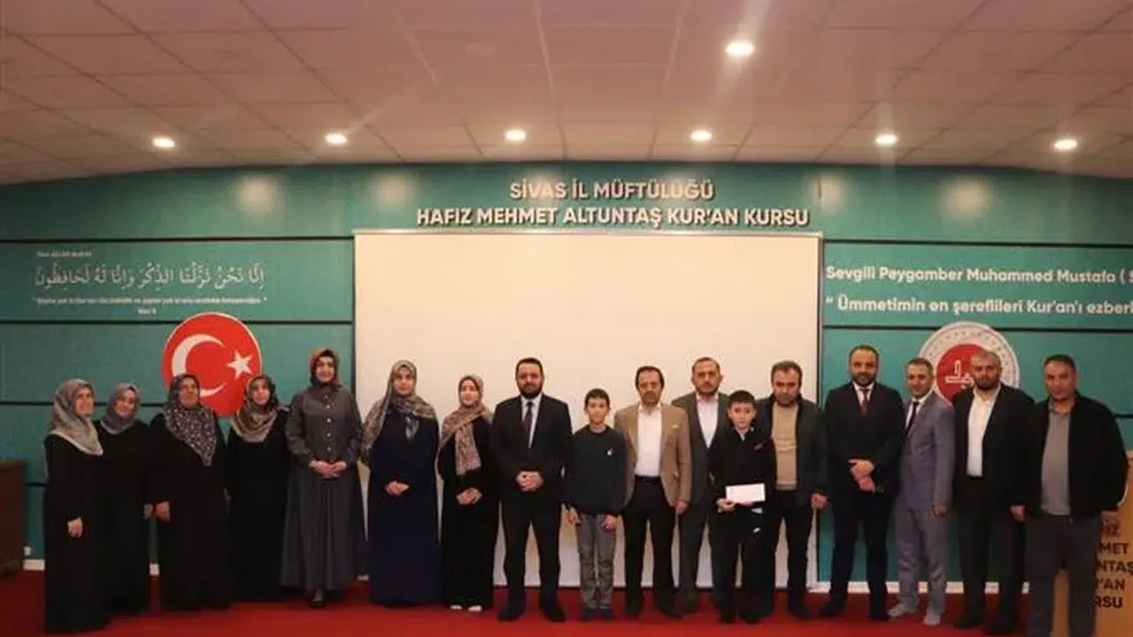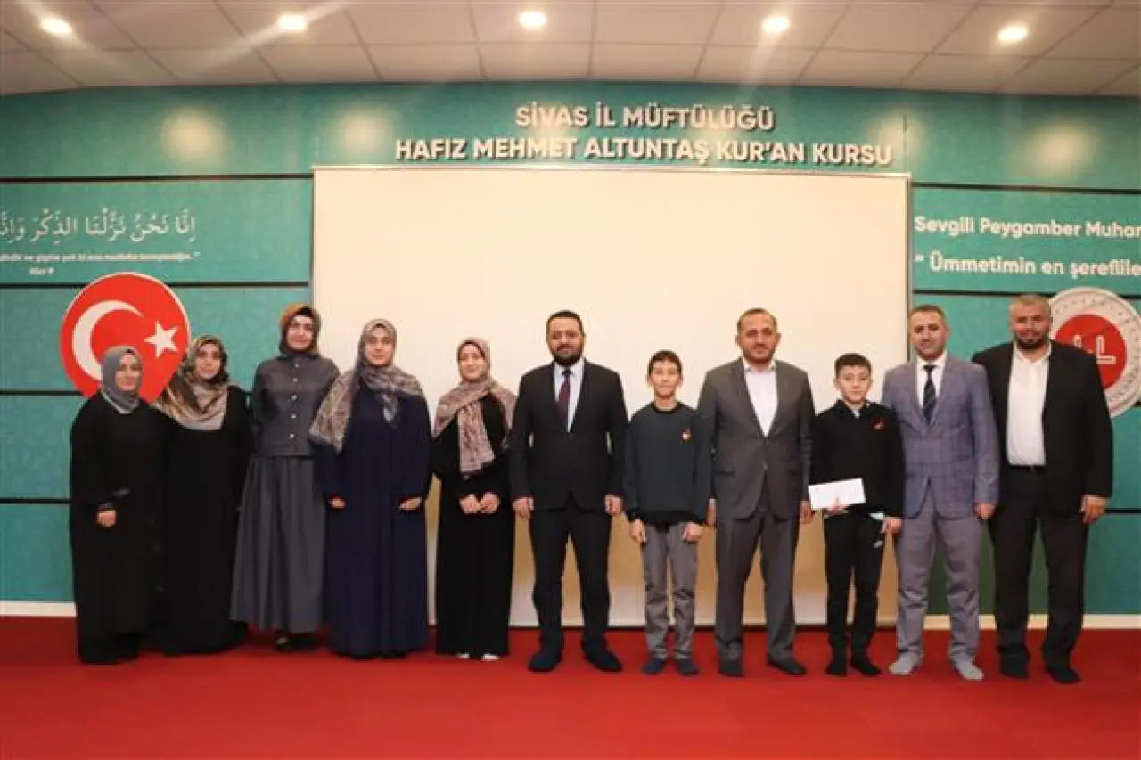 Sivas’ın yetiştirdiği genç hafızlar, Türkiye genelinde önemli dereceler elde ederek hem ilini hem de hocalarını gururlandırdı. Hafız Mehmet Altuntaş Yatılı Erkek Kur’an Kursu Konferans Salonu’nda düzenlenen törene; İl Müftüsü Hasan Limon, müftü yardımcıları, şube müdürleri, Eğitim Hizmetleri Birimi personeli, öğrenciler ve veliler katıldı.