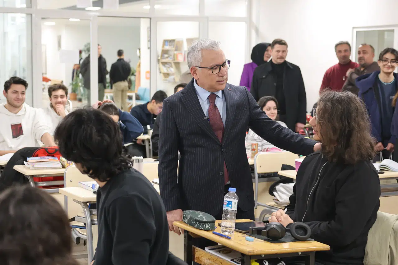 Sınıfları tek tek gezerek Yükseköğretim Kurumları Sınavı’na (YKS) hazırlanan öğrencilerle bir araya gelen Vali Şimşek, gençlerin hazırlık sürecindeki motivasyonlarını artıracak bir görüşme gerçekleştirdi. Sınav sürecinin sadece ders çalışmaktan ibaret olmadığını belirten Vali Şimşek, her birey için disiplinli ve planlı çalışmanın başarının kapısını açan asıl anahtar olduğunu ifade etti. Öğrencilerin çalışma azminden duyduğu memnuniyeti dile getirirken, Sivas’ın gelecekteki başarılarında bu sıralarda oturan gençlerin imzasının olacağını hatırlattı.