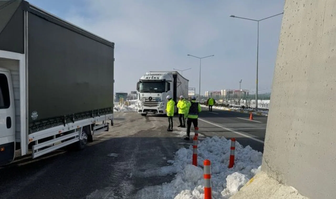 Erzincan İl Emniyet Müdürlüğü Bölge Trafik Denetleme Şube Müdürlüğü personelince zorunlu kış lastiği uygulamasının başlamasıyla birlikte Erzincan'da şehirlerarası yük ve yolcu taşıyan ticari araçlar tek tek kontrol edildi.