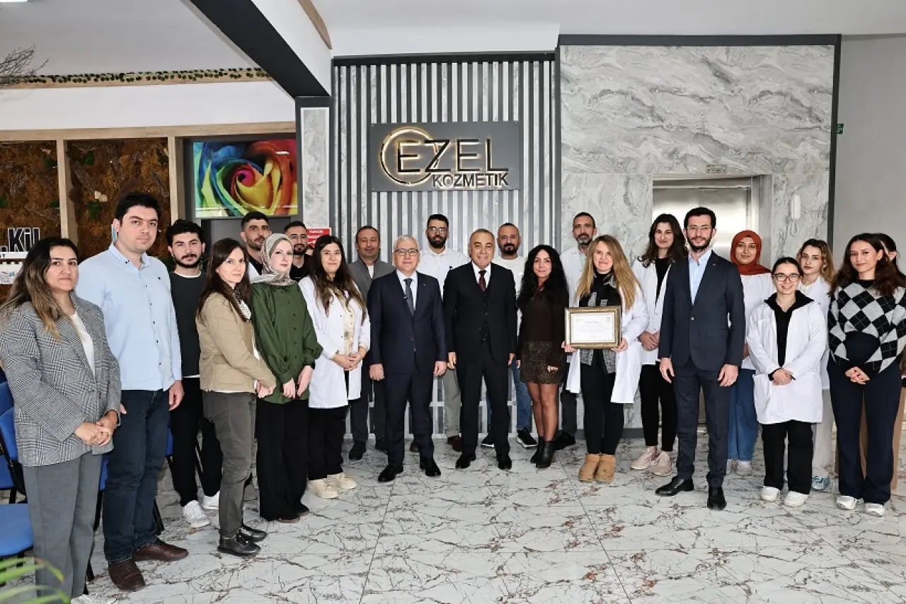 Son durakta ise Türkiye’nin En Hızlı Büyüyen 100 Şirketi arasında yer alan Ezel Kozmetik ziyaret edildi. Şirketin başarısının Sivas için gurur kaynağı olduğunu belirten Vali Yılmaz Şimşek, firma yetkilisi Ünal Karaca’ya teşekkür belgesi takdim etti.