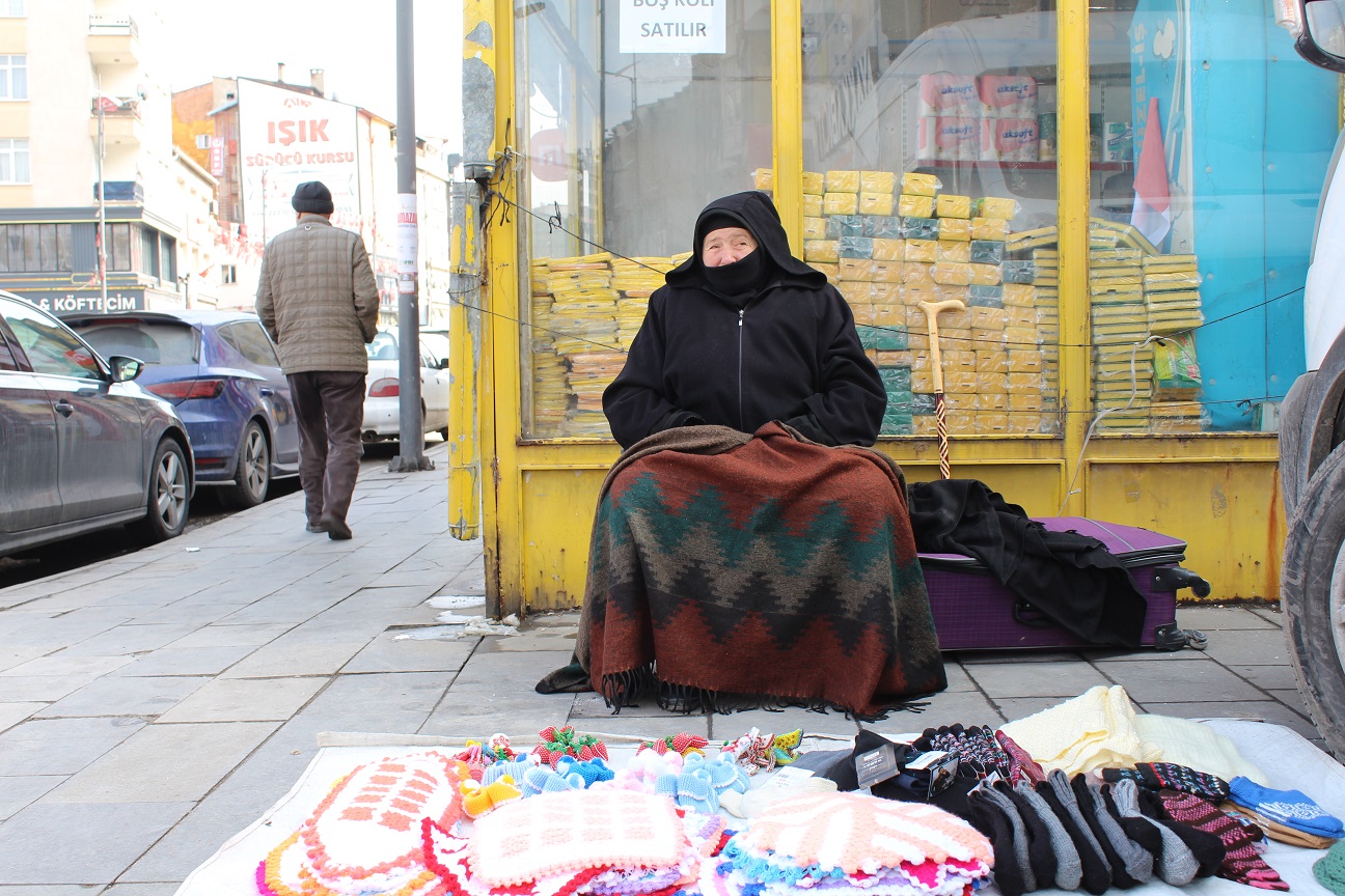 Sivas’ta Atatürk Caddesi’nde, Hacer Bal isimli 60 yaşındaki kadın, el emeğiyle ördüğü patik ve lifleri satarak geçimini sağlıyor. Zaradan geldiğini belirten Bal, eşinin psikolojik rahatsızlığı nedeniyle köyde yaşadığını, kendisinin ise şehirde kira ödemek zorunda olduğunu söylüyor.