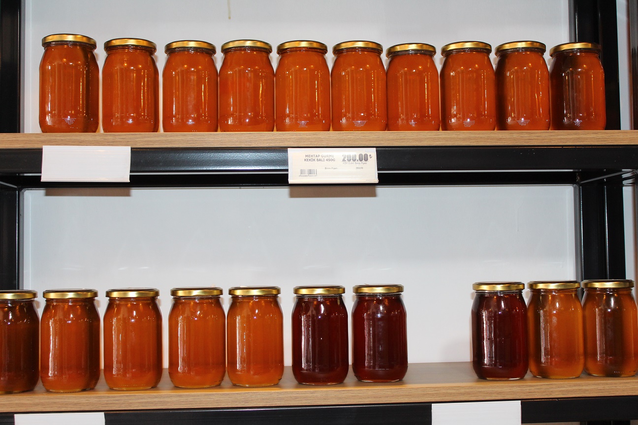 Çoban, standın sirke, reçel ve turşu çeşitlerinin yanı sıra gül sirkesi, vanilya sirkesi ve bal sirkesi gibi farklı ürünler de sunuyor.