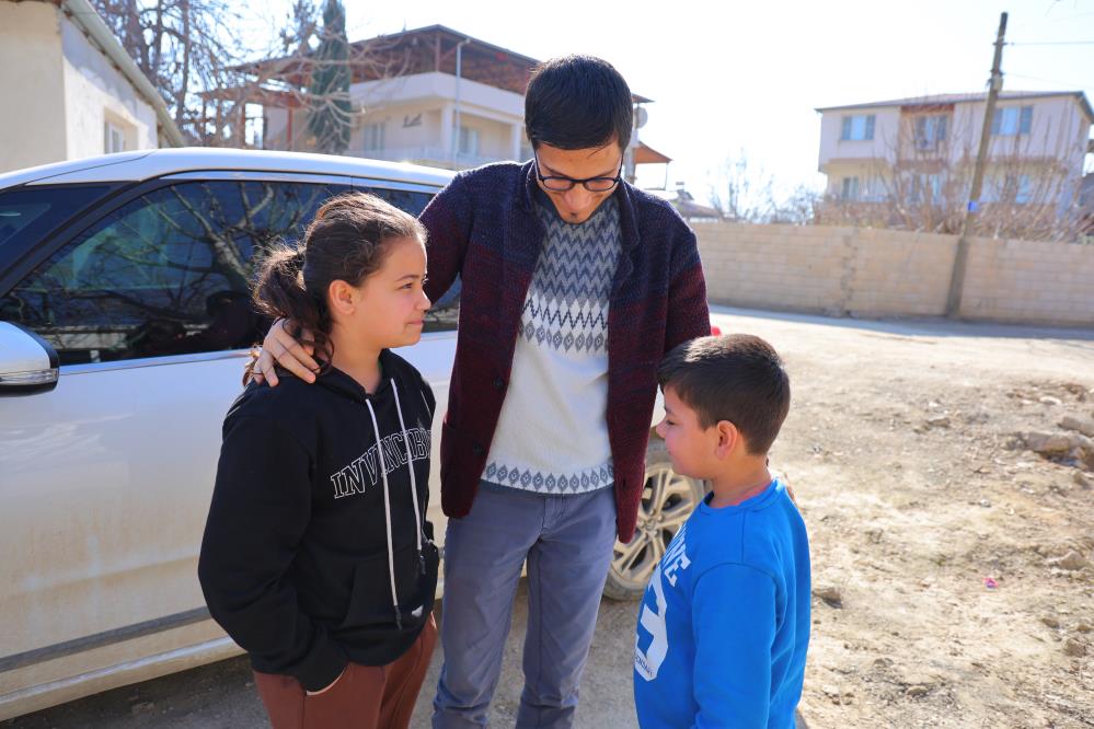 Kurtardığı aile ve çocuklarla depremin yıl dönümünde buluşan Enes Lekesiz, "Türkoğlu ilçesinde Miray ve Lütfi kardeşlerimizin yanındayız. Depremde tespit ettiğim alanlardan biriydi burası. İçinde insan olan ve ses gelen bir yerdi. Tüm çabalarıma rağmen ulaşamadım alt kattaydı ve tamamen ev çökmüştü. Çevredekilerin ekipman desteği ile zemine bir delik açarak ulaşmayı planladım. Sonrasında bir enkaz alanına gittim ve tekrar geldiğimde o ekipmanlar gelmişti. Ancak jandarma da buradaydı ve anne babaya ulaşmak üzereydi. Ben de onlara önce çocukları çıkarmamızı önerdim. Sonra onları bıraktık ve yaptığım tespitlerle bir delik ve tünel açarak önce çocukları ve sonrasında anne ve babasını sağ salim çıkardık. Deprem sonrası kendilerini ziyaret etmeye devam ediyorum. Onlar her zaman benim aklımda ve kalbimdeler o günler geçince böyle güzel hatıraları kalıyor" dedi.