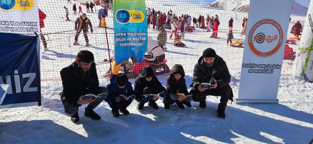 'Evde, toplu taşıma araçlarında, şehir merkezinde, camide, alışveriş merkezinde her yerde okuyoruz' sloganıyla etkinliklerine devam eden Ufka Yolculuk Bilgi ve Kültür Yarışmaları Kayseri Temsilciliği, Erciyes Kayak Merkezi'nde kitap okuma etkinliği düzenledi.
