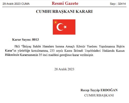 Isınma İçin Kömür Yardımı Kararı