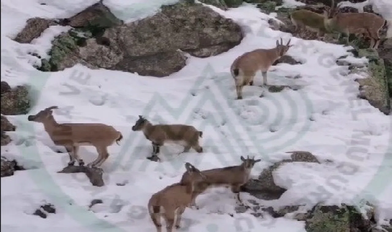 Yaban hayatının zengin olduğu Erzincan'da nesli tükenmekte olan ve koruma altında bulunan dağ keçileri karlı arazide yiyecek ararken DKMP ekiplerince drone ile kaydedildi. Yükseklerde yaşadığı için nadir görülen dağ keçileri doğaseverleri mest etti. Yakından görüntülenen sürü halindeki dağ keçileri belgesel niteliğinde görüntüler ortaya çıkardı. Karlı arazide kendi doğasında görüntülenen dağ keçileri doğaseverlerin beğenisine sunuldu.