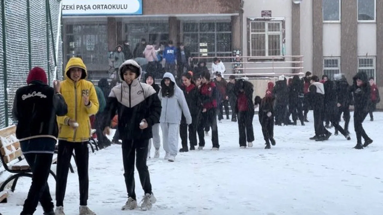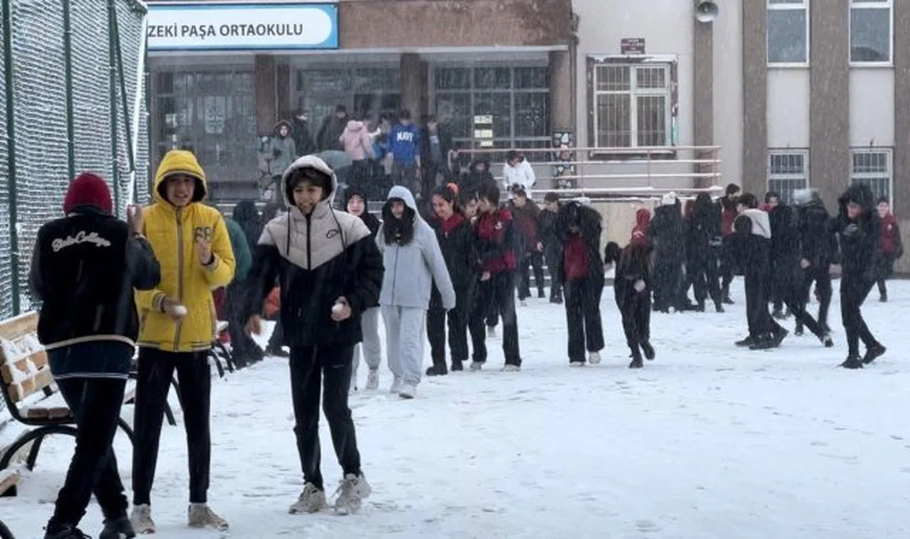 Erzincan'da sabah saatlerinde etkili olan kar yağışını çocuklar sevinçle karşıladı. Tenefüs zilinin çalmasıyla okul bahçesine akın eden çocuklar kartopu oynayarak karın keyfini çıkardı.