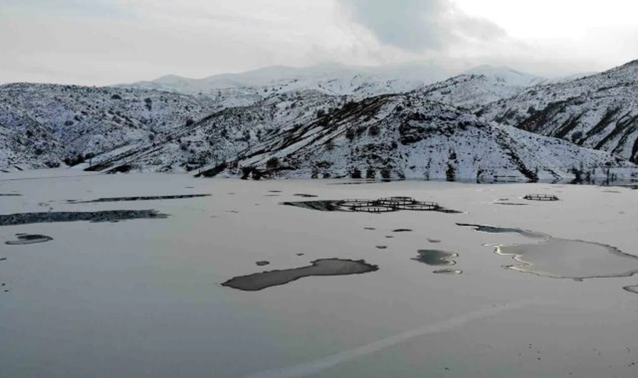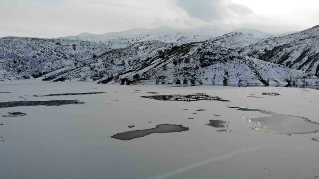 Yaz mevsiminde tarım arazilerinin sulamasında kullanılan, aynı zamanda kafes balıkçılığı da yapılan barajda, balık kafesleri buz kütlesinin altında kaldı. Kar yağışının olmadığı ancak gece saatlerinde etkili olan soğuk hava nedeniyle Doğu Anadolu Bölgesi'ndeki, dere, çay ve barajlar dondu.
