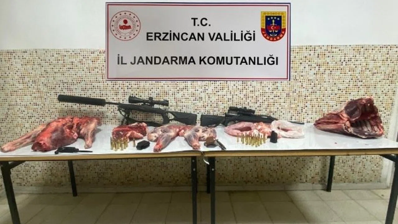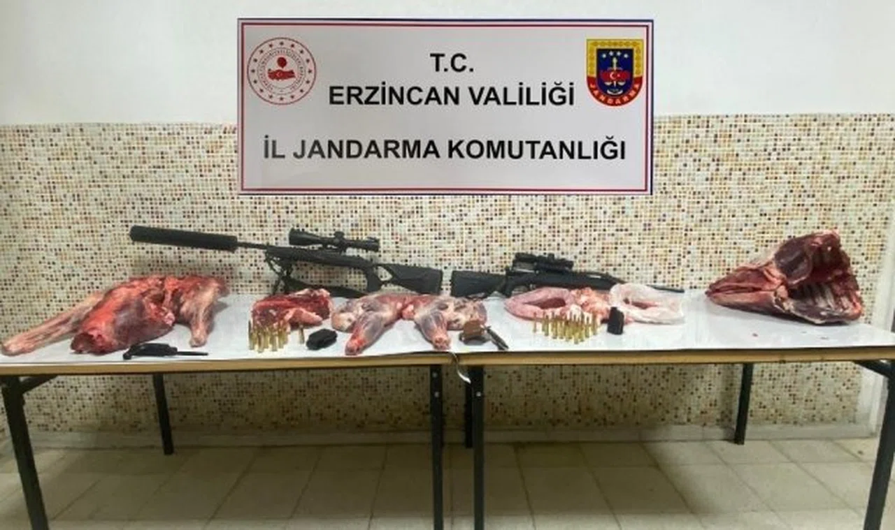 Erzincan İl Jandarma Alay Komutanlığı'ndan yapılan açıklamada; 'Refahiye ilçesi Doğandere Devlet Avlağı Güventepe köy civarında kaçak olarak av yaptığı tespit edilen 4 şahıs, Gümüşakar Jandarma Karakolu devriyesi ile Çevre, Doğa ve Hayvanları Koruma Tim personeli tarafından yakalanmıştır. Olayda kullanılan; 1 adet Blzir R8 Marka, 338 lepoa Magnum dürbünlü ve Hausken lydamper 406 marka susturuculu çatal ayaklı yivli tüfek, 1 adet Monza marka dürbünlü 308 kalibre tüfek, 2 adet kamp bıçağı (swaroski ve geovid marka), 30 adet fişek (sellier & bellot marka 308 kalibre 21 adet, Trg marka 338 kalibre 9 adet), 1 parçalanmış dağ keçisi ele geçirilmiş, malzemeler muhafaza altına alınmıştır.
