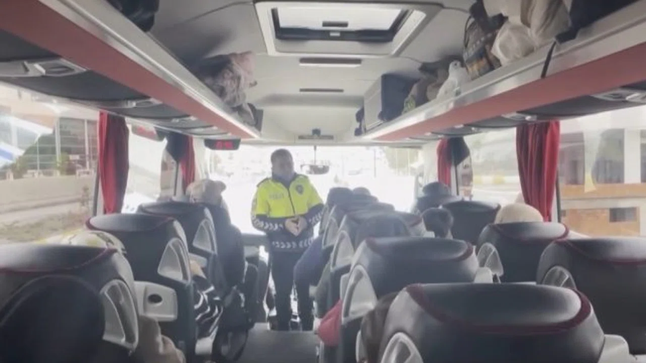 Erzincan-Sivas karayolunda durdurulan araç ve otobüslerdeki yolcular emniyet kemeri hususunda trafik polislerince bilgilendirildi.