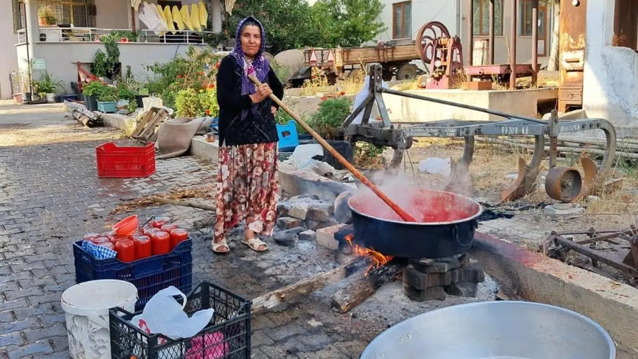 Üzümlü’nün çalışkan kadınları, devam eden kış hazırlıkları için salçaları özenle hazırlarken hem ailecek doğal ürün tüketmiş, hem de ev ekonomisine katkı sunmuş oluyor. Kadınlara erkekler de yardım etmesi dikkatlerden kaçmadı.