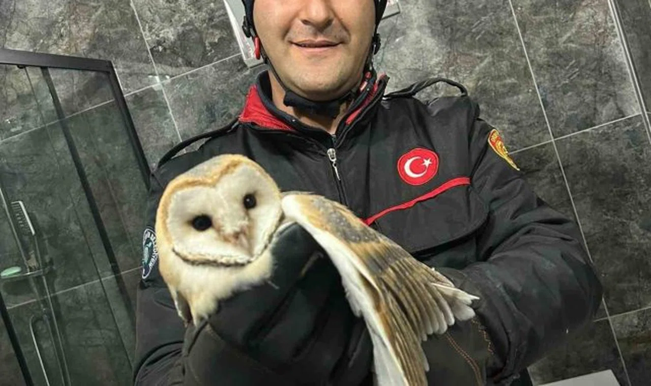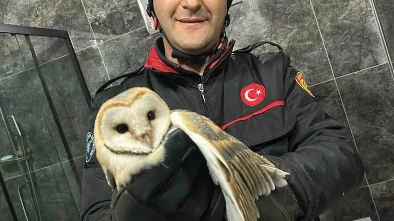 Ordu'da bir evin banyosuna giren ve mahsur kalan baykuş, Ordu Büyükşehir Belediyesi İtfaiye ekipleri tarafından kurtarıldı.