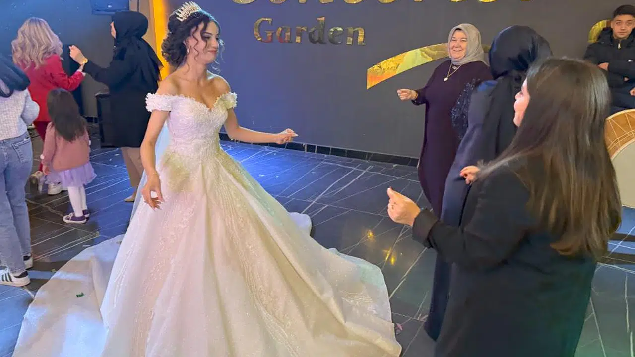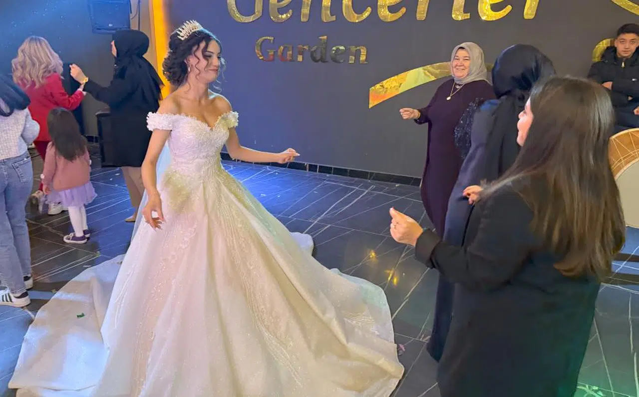 Gelin ve damadın arkadaşları ve ailelerinin birlikte eğlendiği düğün, iki kültürün uyum içinde birleştiği samimi bir atmosferde devam etti.