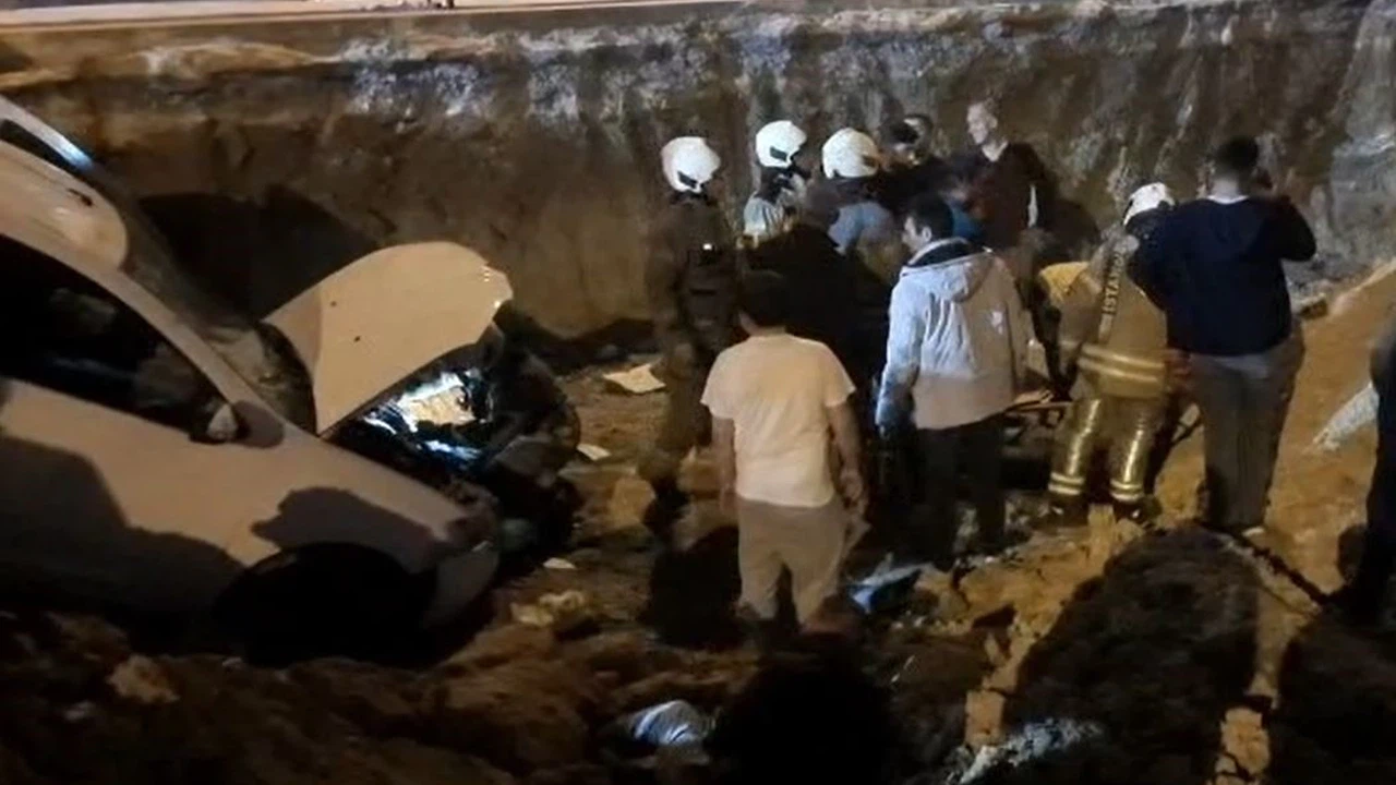 İstanbul Arnavutköy'de sürücüsünün kontrolünden çıkan bir otomobil inşaat bekçisine çarpıp, bekçiyle beraber şantiye alanına uçtu.