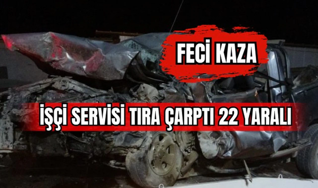 Manisa'nın Turgutlu ilçesinde işçi servisinin tıra arkadan çarpması sonucu meydana gelen kazada 22 kişi yaralandı.
