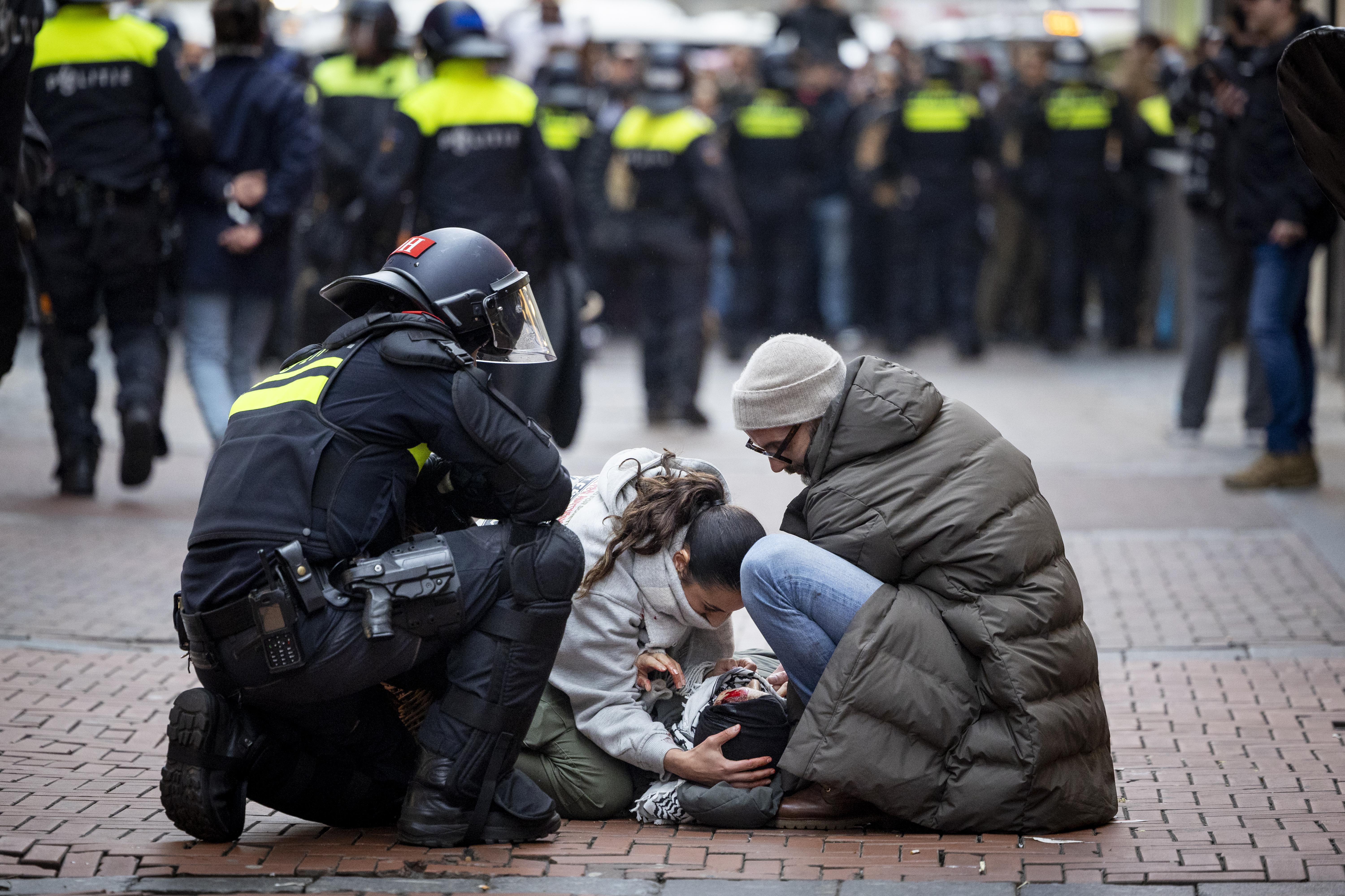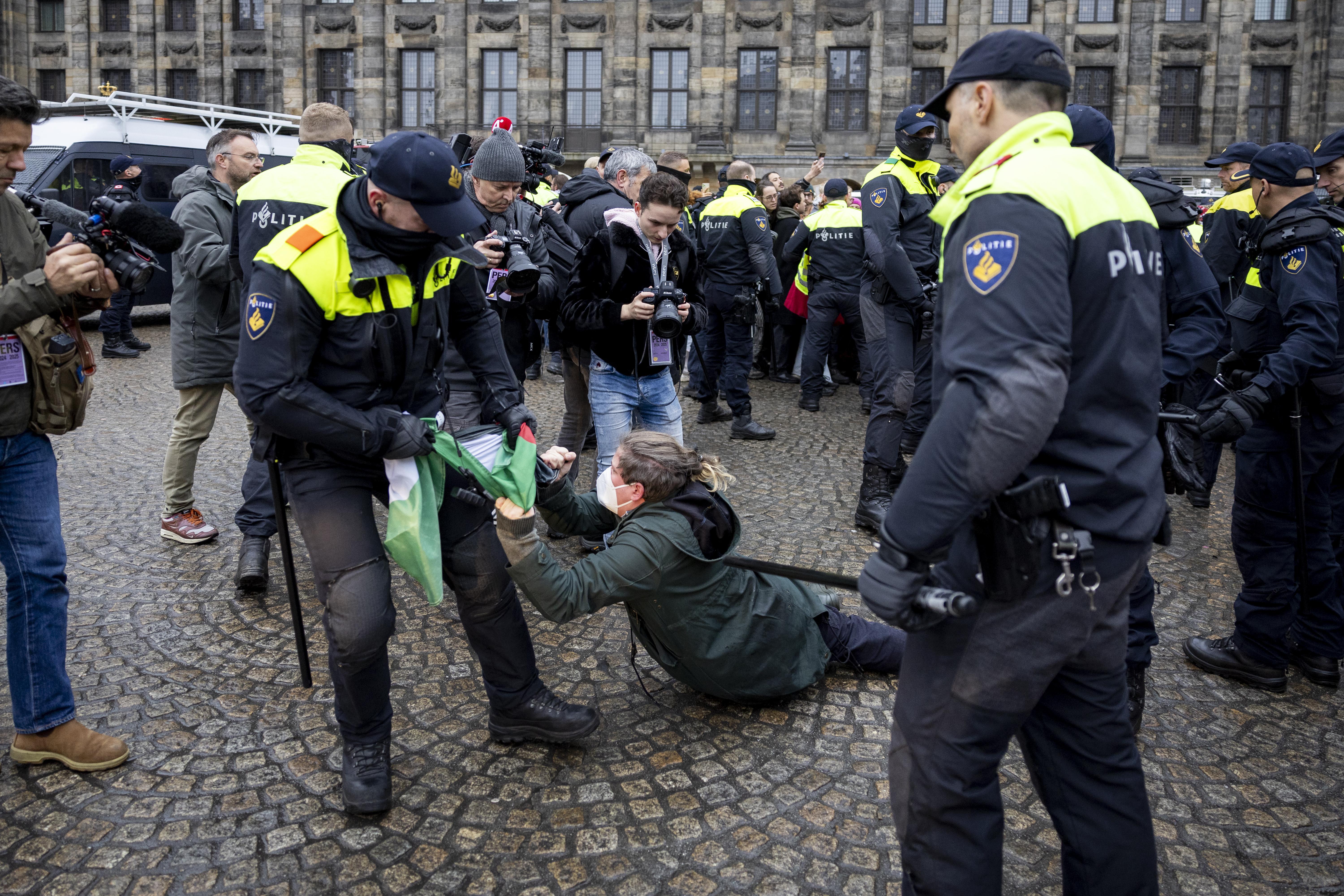 Hollanda'nın başkenti Amsterdam'da Filistin'e destek gösterisine sert müdahalede bulunan polis, 100'den fazla kişiyi gözaltına aldı.