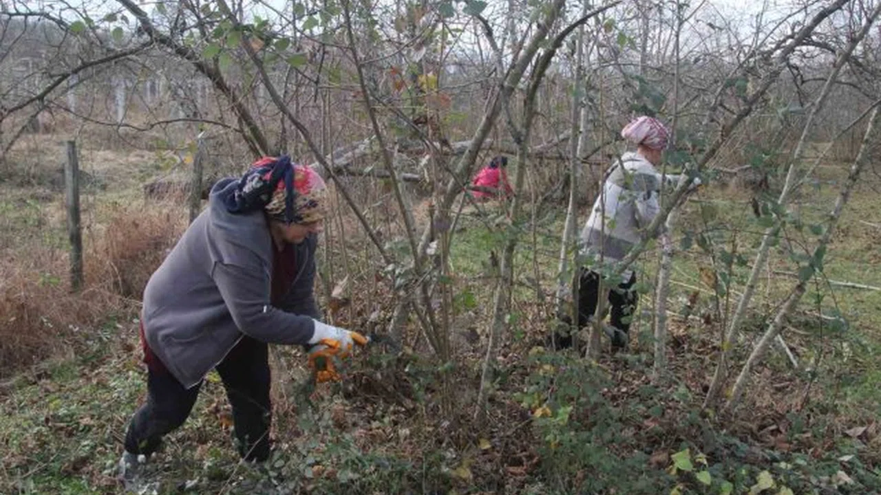 Karadeniz Bölgesi'nin en önemli geçim kaynağı olan fındıkta kış bakımı başladı. Fındık bahçesinde eşleri ile birlikte yevmiye usulü çalışan kadınlar, aile ekonomisine katkı sunuyor.