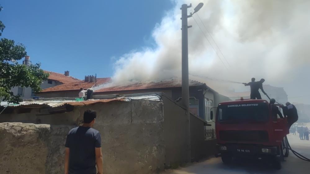 Sivas’ın Şarkışla ilçesinde tek katlı bir evde çıkan yangın, kısa sürede tüm çatıyı sardı. Mahalle sakinleri yoğun duman nedeniyle panikle dışarı fırladı.