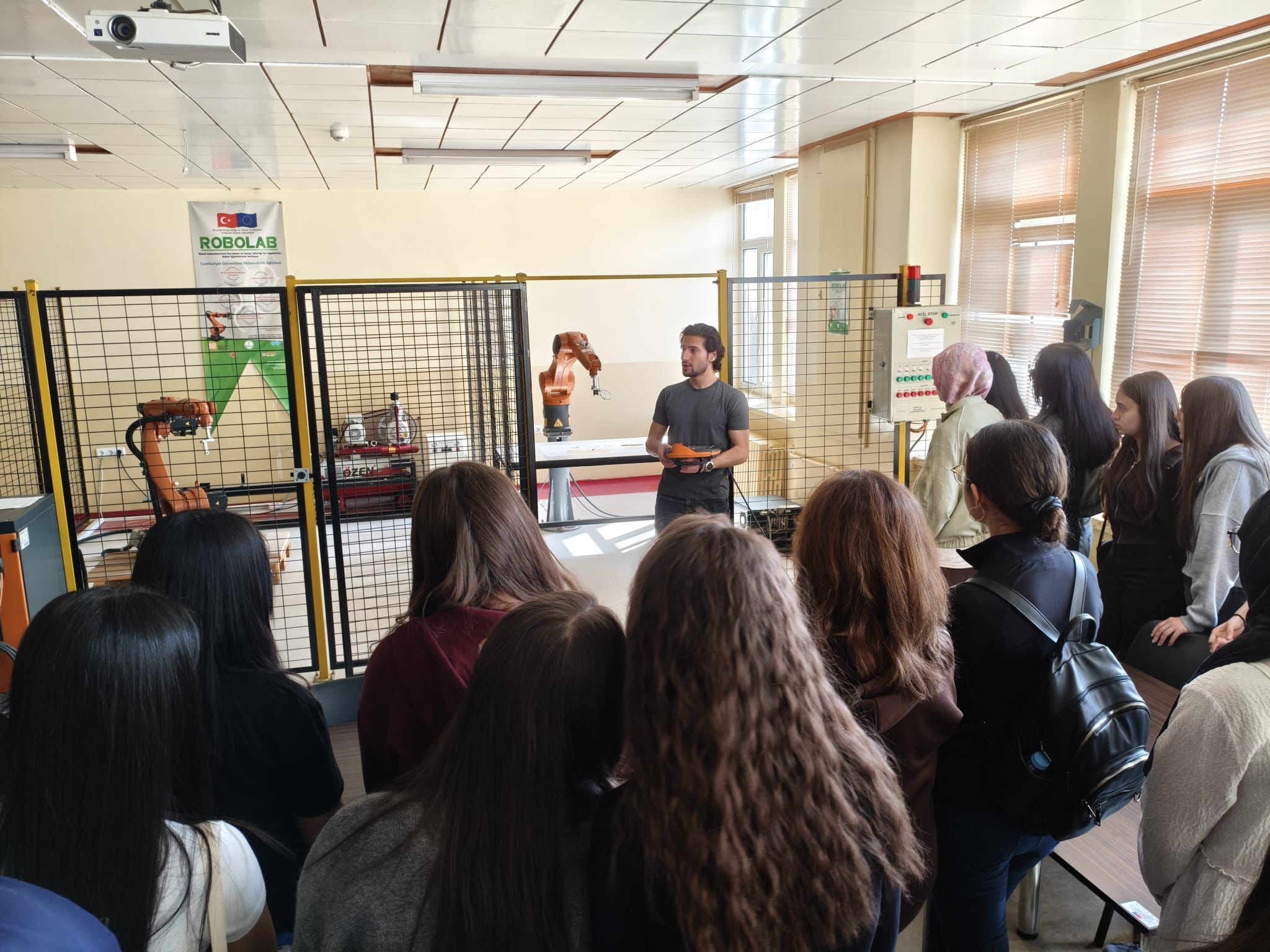 Sivas Cumhuriyet Üniversitesi tarafından düzenlenen teknik ziyaret programı kapsamında, öğrencilere fakültenin sahip olduğu teknolojik altyapı ve yürütülen bilimsel projeler hakkında detaylı sunumlar yapıldı. Gençlerin mühendislik disiplinlerine olan ilgisini artırmayı amaçlayan bu ziyarette, teorik bilgilerin pratiğe nasıl dönüştüğü laboratuvar ortamında gösterildi. Özellikle üniversite bünyesinde faaliyet gösteren Robolab Laboratuvarı, ziyaretin en dikkat çekici noktalarından biri oldu. Burada gerçekleştirilen uygulamalı tanıtımlar ve robotik sistemler, liseli öğrencilerin büyük ilgisini topladı.