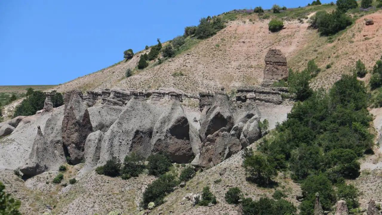 "Burası Gelinkayalar Vadisi olarak biliniyor. Kayaların şekilleri insan ve hayvan figürlerine benziyor. Mağaralar var, doğayla iç içe, görsel şölen sunan bir yer. Yol zorlu ama manzara her şeye değiyor. Kapadokya’nın devamı gibi."