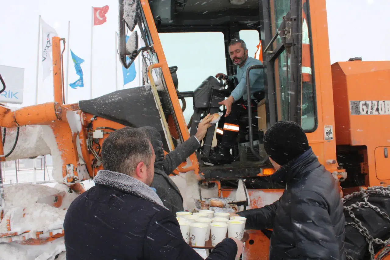 Sivas Belediyesi ekipleri, Taşlıdere’de mahsur kalan vatandaşlara ulaşarak sıcak çorba ve su ikramında bulundu. Özellikle uzun süredir direksiyon başında olan kamyon şoförleri için yapılan bu destek, soğuk havada moral kaynağı oldu.