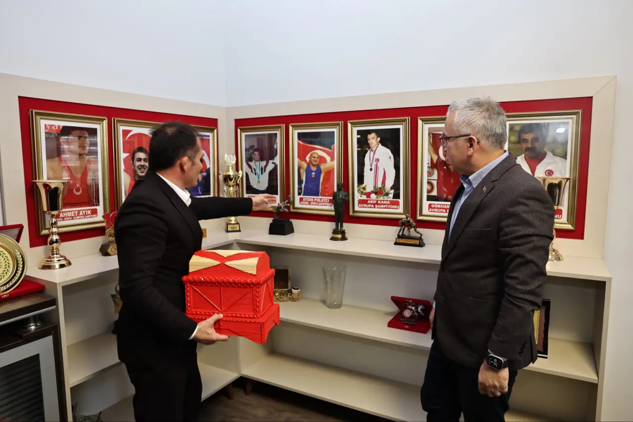Ziyaret kapsamında Dernek Başkanı, eski Avrupa ve Dünya Şampiyonu Sebahattin Öztürk’ten derneğin faaliyetleri hakkında bilgi alan Vali Şimşek, güreş camiası temsilcileriyle de bir süre sohbet etti.