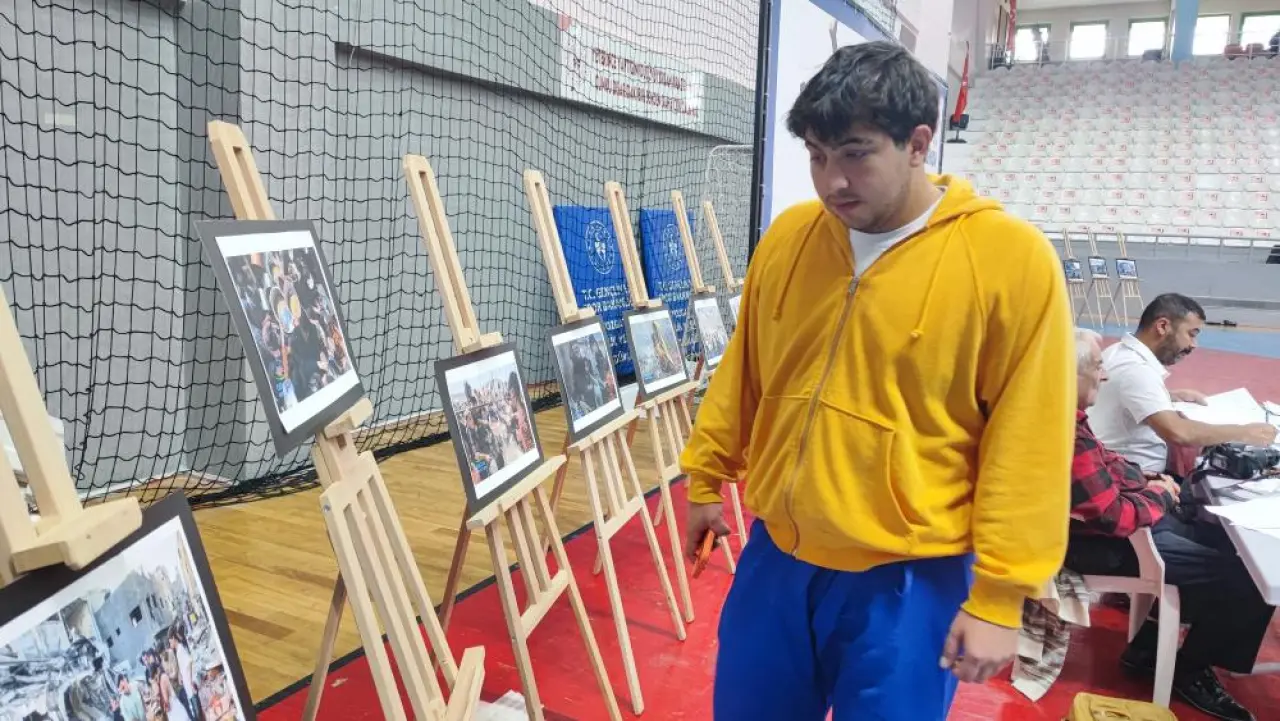 Sergiyi ziyaret eden sporculardan İslim Koca, müsabakalar için Kilis’ten geldiğini belirterek, “Burada açılan Filistin’e destek sergisini gördük. Arkadaşlarımla beraber fotoğrafları inceledik. Onların yanındayız” ifadelerini kullandı.