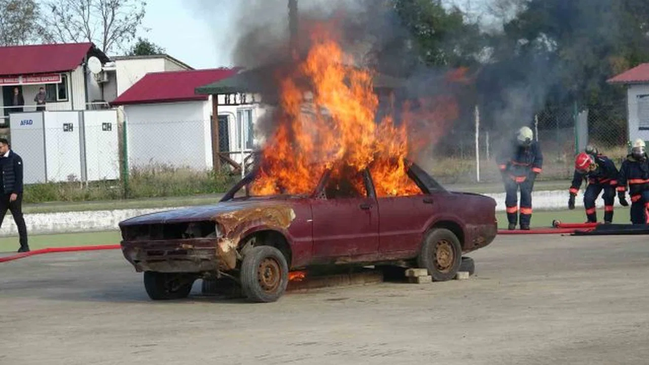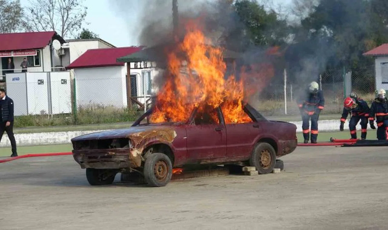 Tatbikat sırasında, hurda bir araç içerisine bataryalar ve yangına sebep olabilecek materyaller yerleştirildi. Benzin kullanılarak yakılan araç, bin 200 dereceye kadar ısındı. İlk müdahalede, yangın battaniyesiyle aracın üzeri örtülerek havayla teması kesildi ve yangının sıcaklığı 100 dereceye düşürüldü. Ardından battaniye kaldırılarak su ve köpükle soğutma işlemi gerçekleştirildi.