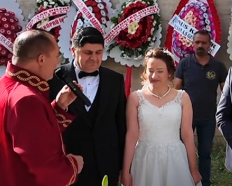 Tarihi Gökmedrese’nin bahçesindeki restoranın açık alanında gerçekleşen nikahın “eserin maneviyatına yakışır bir edeple” yapıldığını belirten Tuztaşı, yaklaşık 15-20 dakikalık sade bir törenden sonra aileleriyle birlikte kısa süreli bir vakit geçirdiklerini ifade etti.