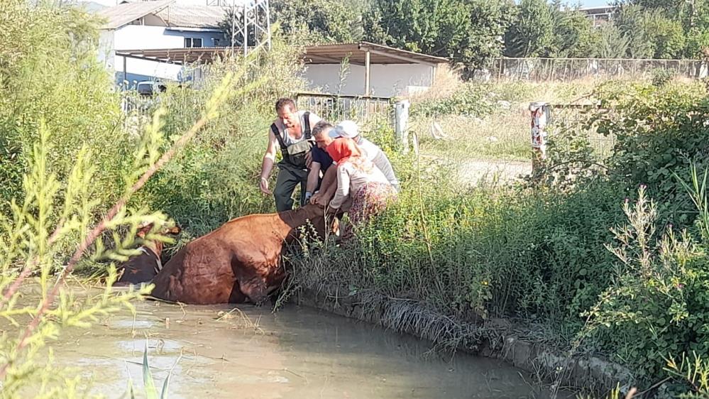 Tokat’ın Erbaa ilçesinde gölete düşen 3 inek, itfaiye ekiplerinin yaklaşık 1 saat süren çalışmasıyla kurtarıldı.