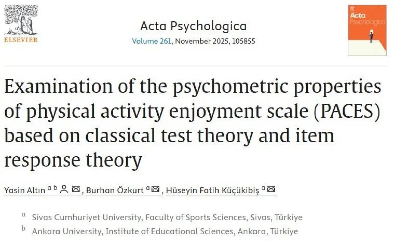 Akademisyenlerin "Examination of the psychometric properties of physical activity enjoyment scale (PACES) based on classical test theory and item response theory” başlıklı makalesi, fiziksel aktiviteye duyulan keyfi ölçmek amacıyla kullanılan PACES ölçeğinin psikometrik özelliklerini derinlemesine inceledi. Çalışma, ölçeği hem geleneksel Klasik Test Kuramı (KTK) hem de modern yaklaşımlardan biri olan Madde Tepki Kuramı (Item Response Theory – IRT) çerçevesinde analiz ederek literatüre değerli bir katkı sağladı.