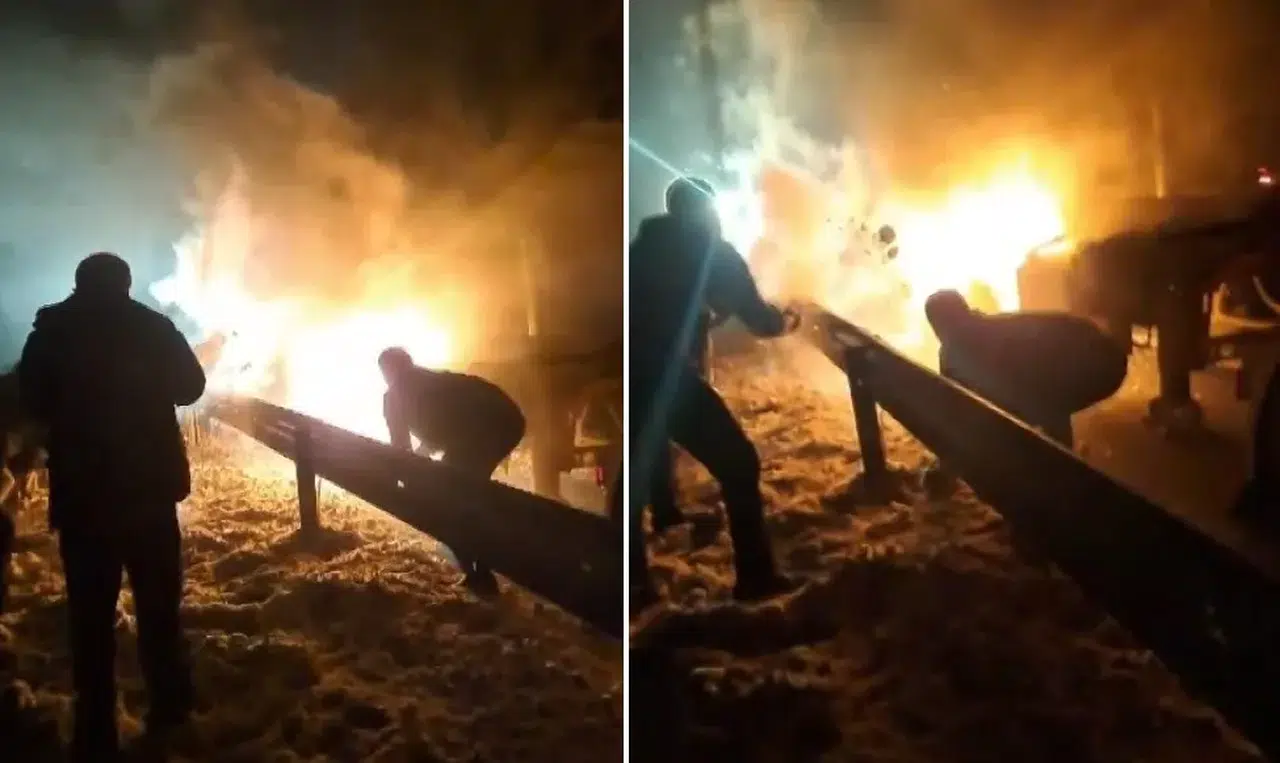 Sivas’ta bir tırın yakıt deposunda başlayan yangın, kısa sürede paniğe neden oldu. Alevlere ilk müdahaleyi ise olay yerinden geçen vatandaşlar yaptı. O anlar cep telefonu kamerasıyla saniye saniye kaydedildi.