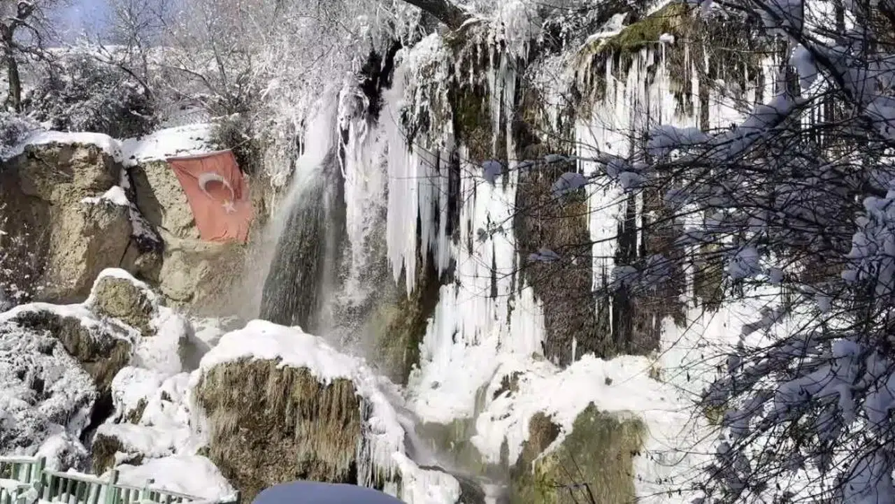 Dondurucu soğukların etkisini sürdürdüğü Sivas’ta, Sızır Şelalesi’nin buz tutmuş hali kışın doğada bıraktığı izleri gözler önüne sererken, bölge kış turizmi açısından da dikkat çekmeye devam ediyor.