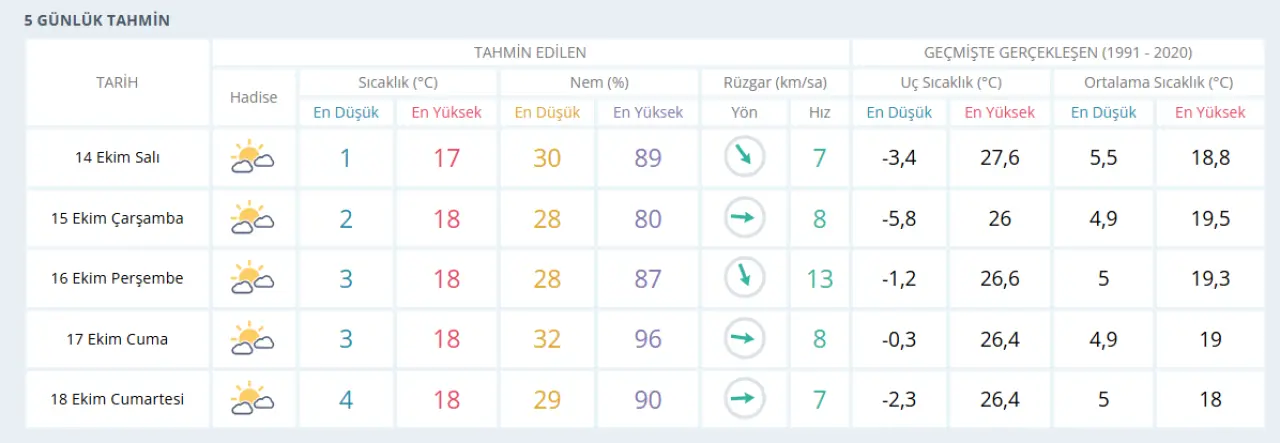 Meteoroloji Genel Müdürlüğü’nün son tahminlerine göre Sivas’ta önümüzdeki günlerin hava durumu şöyle olacak: