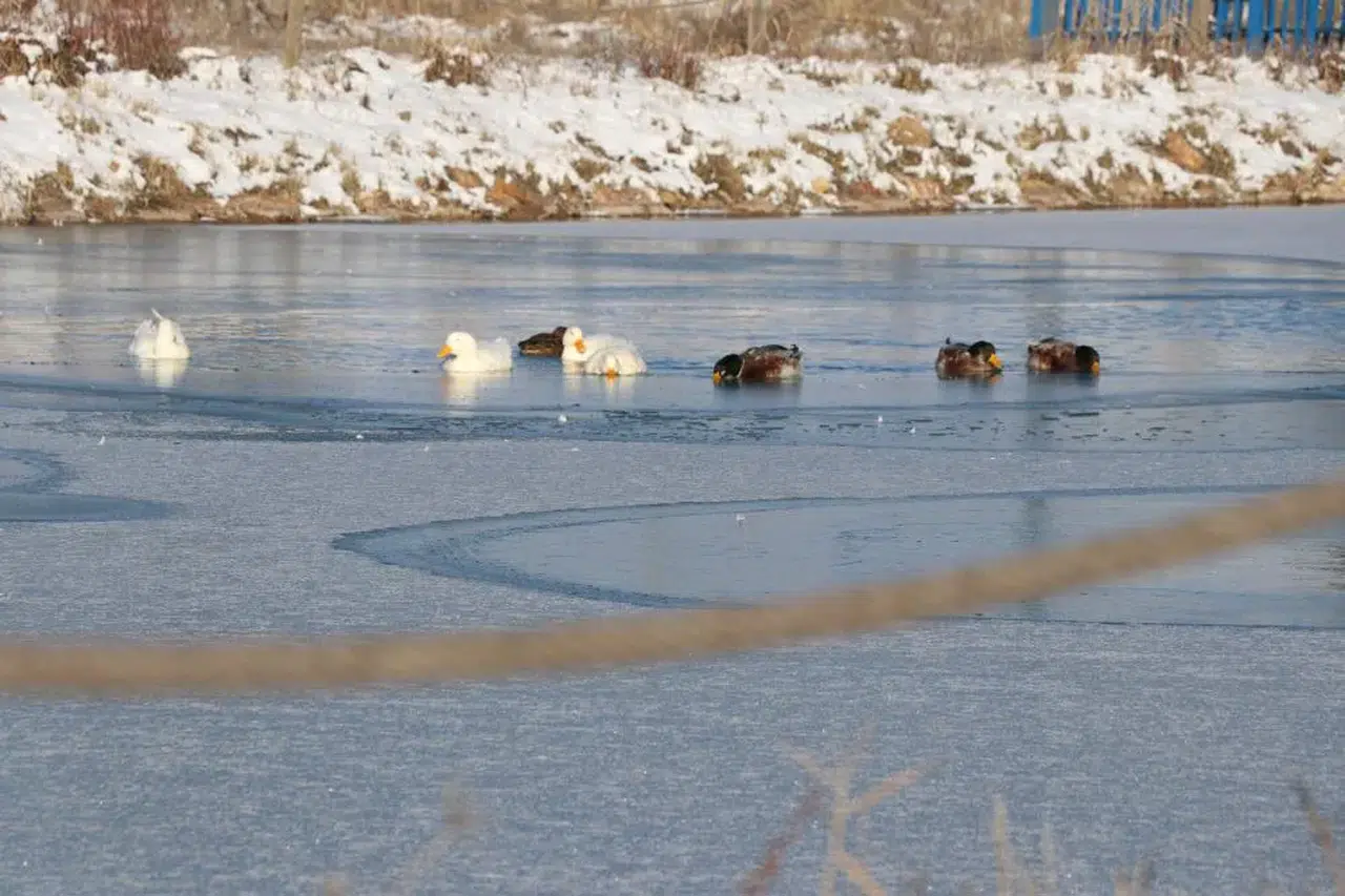 Sivas Cumhuriyet Üniversitesi yerleşkesinde bulunan Hasbahçe’deki yapay gölet, dondurucu havanın etkisiyle büyük oranda buz tuttu. Göletin yüzeyi beyaz bir örtüyle kaplanırken, içerisinde bulunan ördekler suyun donmayan kısımlarında yüzerek hayatta kalmaya çalıştı. Buz tutan alanlar nedeniyle göletin diğer bölümlerine geçemeyen ördeklerin bu çabası, görenlerin ilgisini çekti.