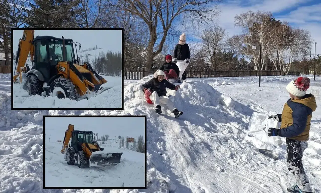 Çocuklar ise karın keyfini kızakla kayarak çıkarıyor.