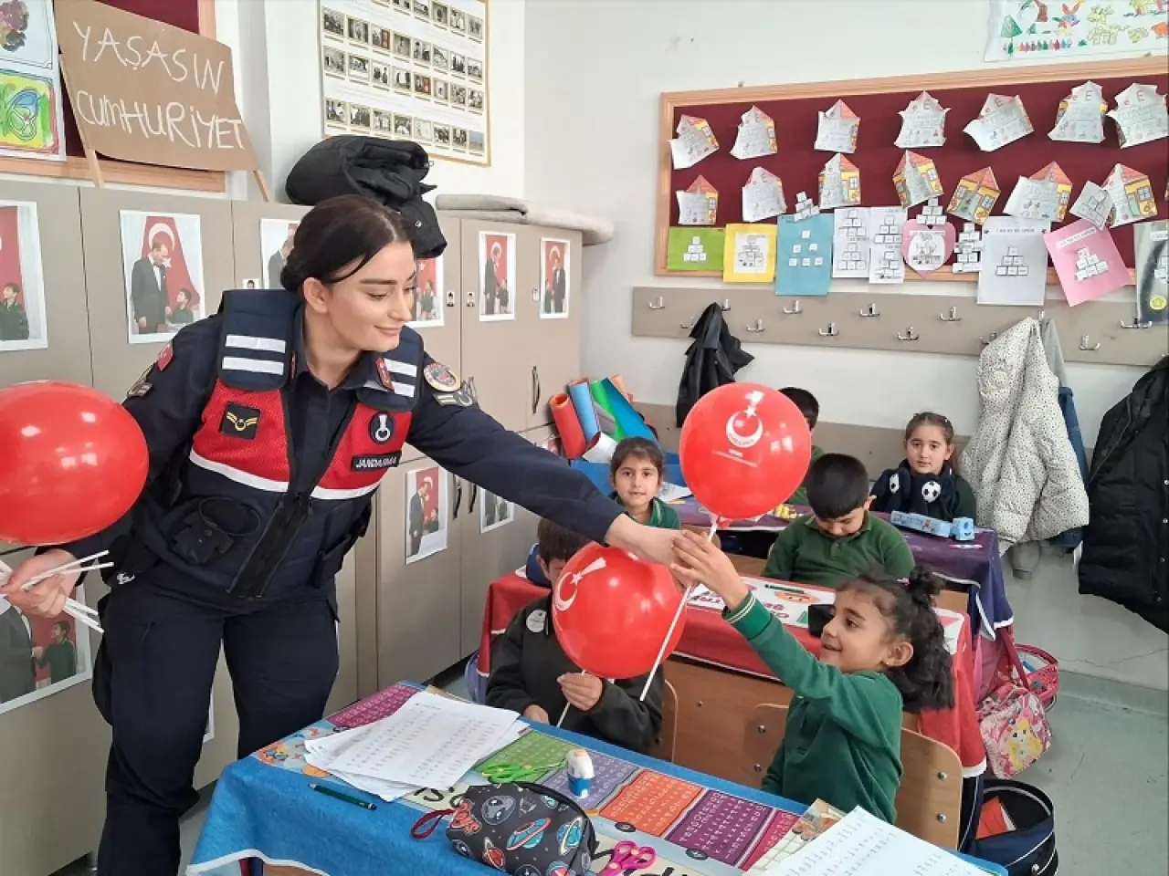 Ziyarette, çocuklara haklarını tanıyan, bilinçlendiren ve günlük yaşamlarında karşılaşabilecekleri olumsuz durumlara karşı farkındalık kazandıran bilgilendirmeler yapıldı. Jandarma ekipleri, çocukların kendilerini güvende hissetmelerini sağlayacak temel bilgiler, güvenli iletişim yolları ve ihtiyaç duyduklarında hangi kurumlara başvurabilecekleri gibi konularda açıklamalarda bulundu.