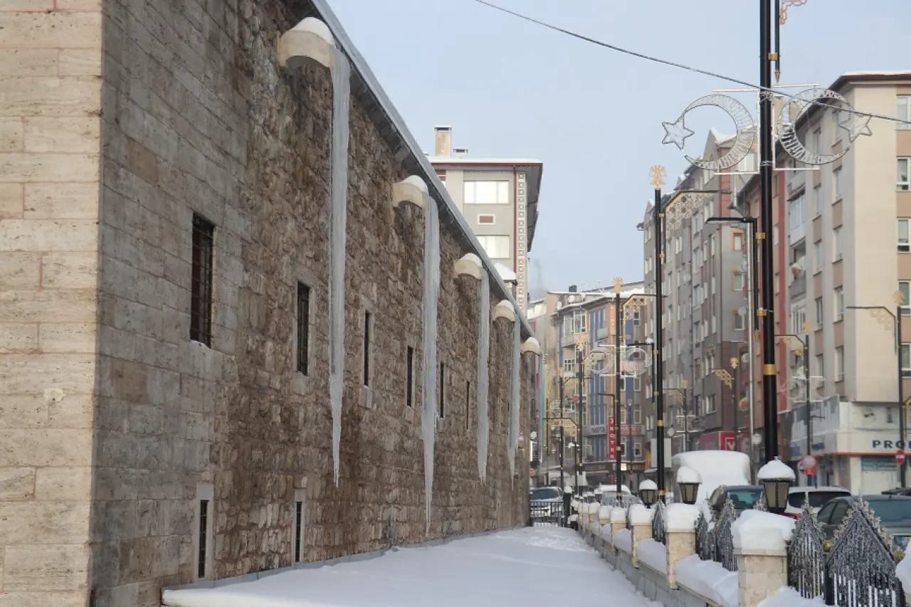 Sivas’taki soğuk hava, tarihi yapılarda da kendini gösterdi. Kent merkezinde bulunan tarihi Behram Paşa Hanı’nın yan kısmındaki oluklarda yaklaşık 4 metreyi bulan buz sarkıtları oluştu. Uzunluğu dikkat çeken buz kütleleri, hem görsel bir manzara oluşturdu hem de olası tehlikelere karşı tedbir alınmasını gündeme getirdi.