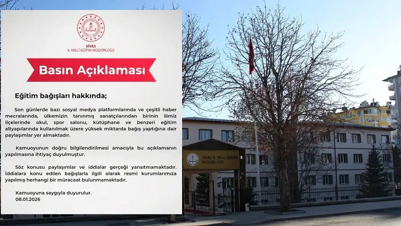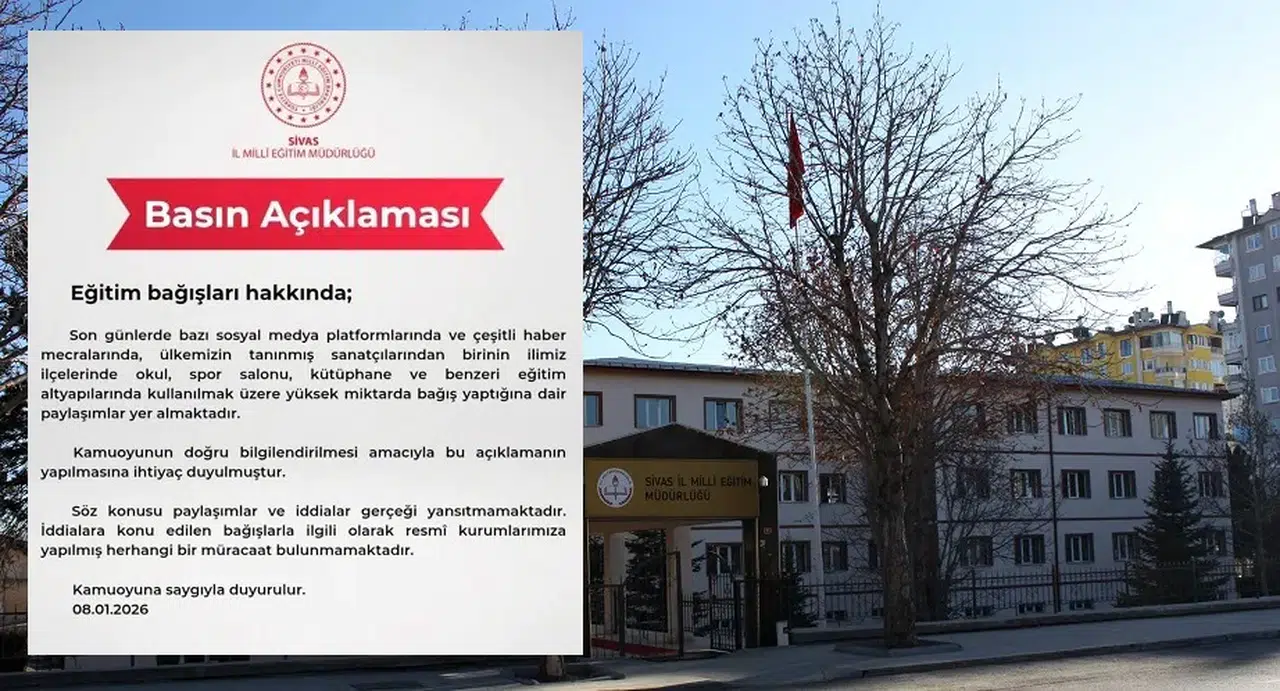 Tartışmalara son noktayı ise Sivas İl Milli Eğitim Müdürlüğü koydu. Kurum tarafından yapılan yazılı açıklamada, sosyal medyada ve bazı haber mecralarında yer alan bağış iddialarının gerçeği yansıtmadığı belirtildi. Açıklamada, iddialara konu edilen bağışla ilgili olarak İl Milli Eğitim Müdürlüğü’ne ya da herhangi bir resmi kuruma yapılmış bir başvurunun bulunmadığı vurgulandı. Kamuoyunun doğru bilgilendirilmesi amacıyla açıklama yapma gereği duyulduğu ifade edildi.