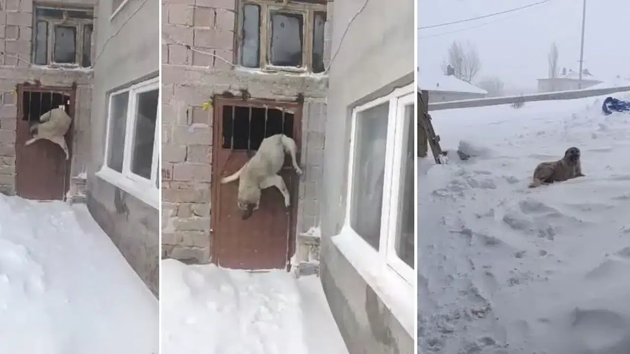 Edinilen bilgilere göre, köyde tipi etkisini artırdığı sırada sahipsiz köpek, Mustafa Çakır’a ait ahıra girdi. Bir süre içeride kalan köpek, yeniden dışarı çıkmak isterken ahır kapısının demir parmaklıklarına sıkıştı. Vücudu kapıya sıkışan köpek, acı içinde ses çıkarmaya başladı. Soğuk hava ve fırtına nedeniyle zor anlar yaşayan hayvan, adeta yardım çağrısında bulundu.