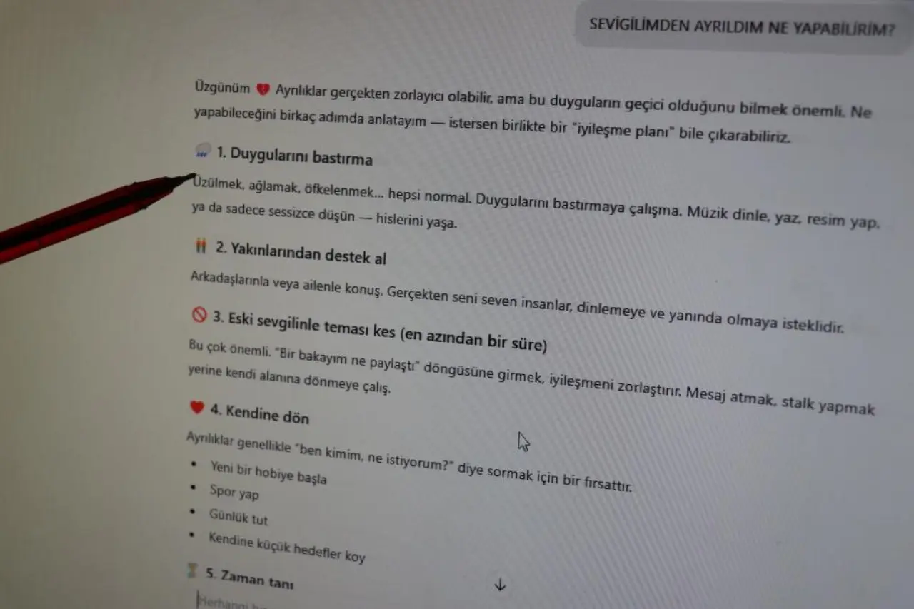 Günümüzde, yapay zekâ teknolojilerinin günlük yaşamdaki hızlı gelişimi, özellikle yalnızlık hisseden, duygusal boşluk yaşayan veya dertleşme ihtiyacı duyan birçok kişiyi yapay zekâ uygulamalarına yönlendiriyor. Sevgilisinden ayrılan, ailevi sorunlar yaşayan veya yoğun stres altındaki bireylerin, özel hayatlarının en mahrem detaylarını yapay zekâ sohbet robotlarıyla paylaşması dikkat çekiyor.