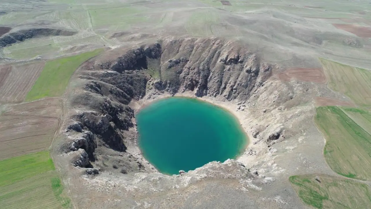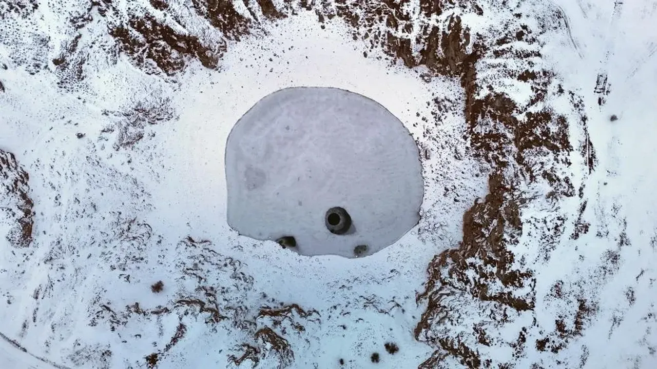 Zara ilçesine bağlı Canova köyüne yaklaşık 2 kilometre mesafede konumlanan Kızılçan Gölü, her yıl binlerce yerli ve yabancı turisti ağırlıyor. Uçsuz bucaksız bir arazinin ortasında, yaklaşık 100 metrelik devasa bir çukurun içinde yer alan göl, yaz aylarında sergilediği canlı turkuaz rengi nedeniyle "Anadolu’nun nazar boncuğu" olarak anılıyor. Ancak son günlerde hava sıcaklıklarının sıfırın altına düşmesi ve kar kalınlığının yer yer 30 santimetreyi bulmasıyla birlikte gölün yüzeyi tamamen buz tuttu. Havadan görüntülenen donmuş göl, beyazın ve buzun estetiğini bir araya getirerek kartpostallık sahneler oluşturdu.