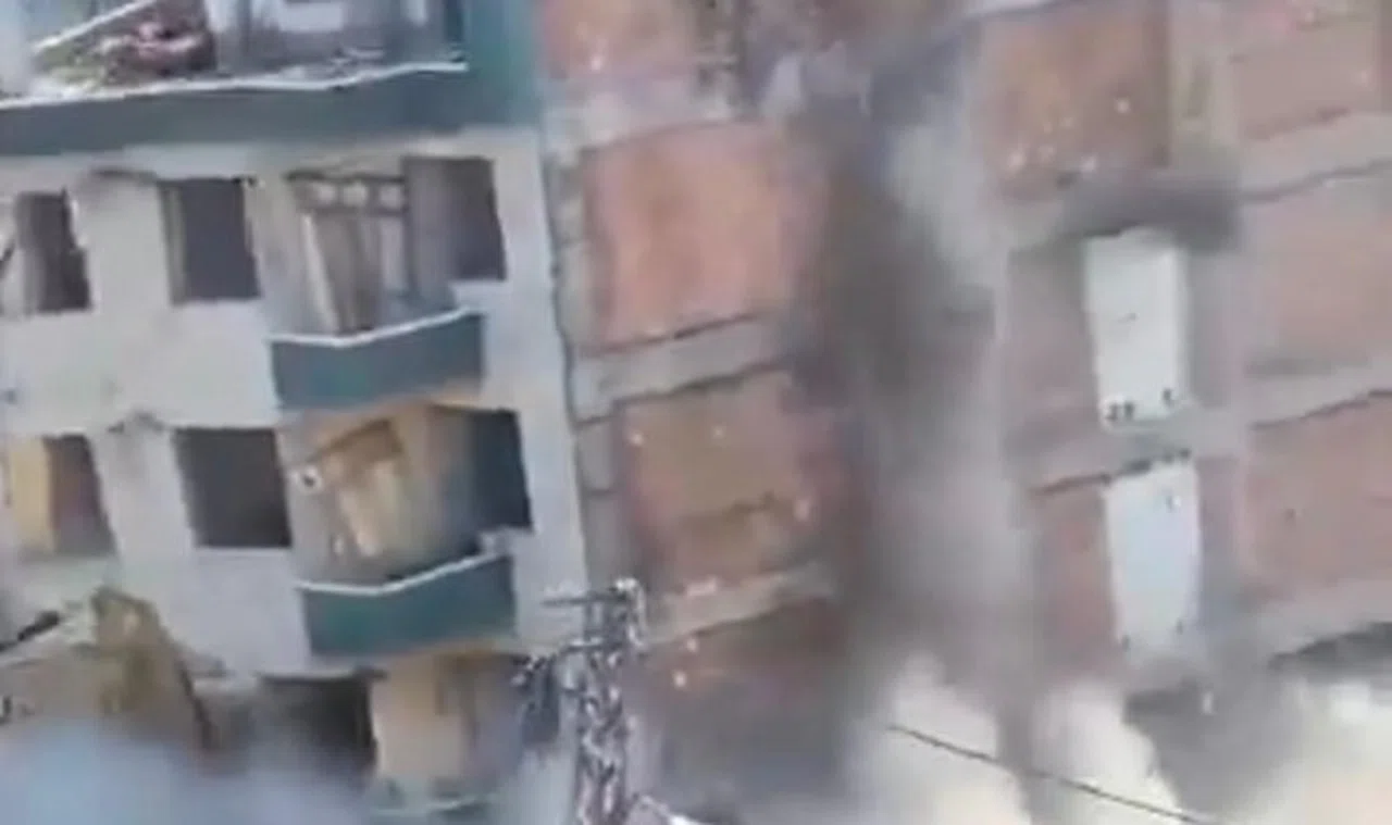 Malatya'nın Battalgazi ilçesinde hasarlı bir bina yıkım işlemleri esnasında iş makinesinin üzerine çöktü. Ortalığı toz bulutlarının kapladığı olayda operatör ise şans eseri yara almadan kurtuldu.